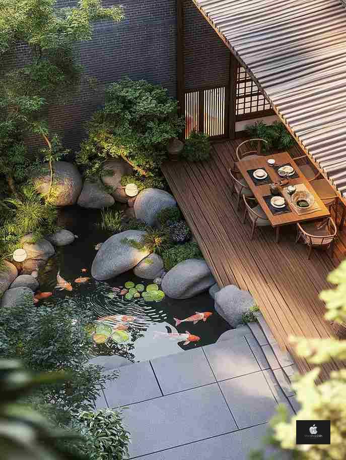 Tùy vào sở thích, gia chủ có thể lựa chọn tiểu cảnh khô (sử dụng đá, sỏi, cây cảnh) hoặc tiểu cảnh nước (bao gồm hồ cá, suối nhân tạo, thác nước mini) để tạo nên không gian hài hòa và sinh động.