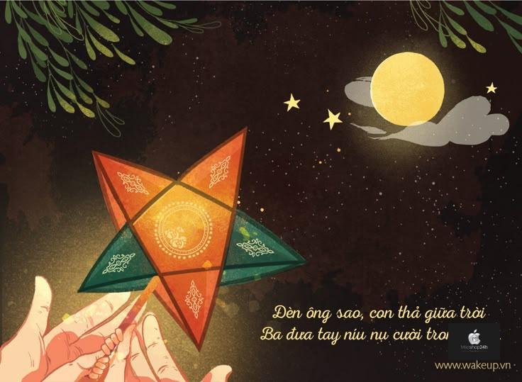 Hình ảnh trung thu đẹp là sự kết hợp hài hòa giữa truyền thống và sắc màu hiện đại. Đó có thể là hình ảnh đám trẻ em tung tăng rước đèn ông sao.