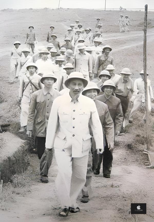 Dù trong hoàn cảnh chiến tranh khốc liệt hay những lúc lao động đời thường, Bác luôn giữ nụ cười hiền hậu, ánh mắt sâu sắc và phong thái ung dung.